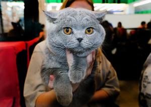 (250216) -- MINSK, 16 febrero, 2025 (Xinhua) -- Un gato es visto durante una exposición internacional de gatos, celebrada en...
