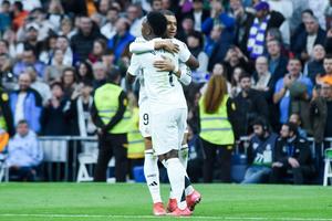 (250224) -- MADRID, 24 febrero, 2025 (Xinhua) -- Imagen del 23 de febrero de 2025 de Vinicius Junior (frente), de...