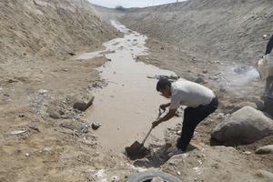 (250227) -- LIMA, 27 febrero, 2025 (Xinhua) -- Residentes limpian un cauce después de las lluvias en la Quebrada Seca,...