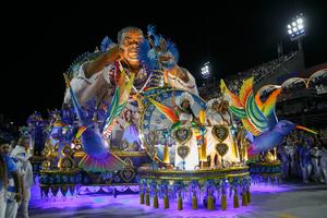 (250304) -- RÍO DE JANEIRO, 4 marzo, 2025 (Xinhua) -- Un carro alegórico de una escuela participa el desfile de...