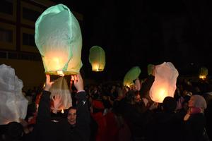 (250228) -- TRÍPOLI, 28 febrero, 2025 (Xinhua) -- Imagen del 27 de febrero de 2025 de residentes soltando linternas de...